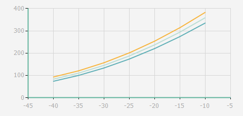 | 蒸發(fā)溫度 | 制冷量+/-5% | 能耗+/-5% | 現在能效+/-5% | 氣體流速+/-5% | 能效+/-7% | ||||