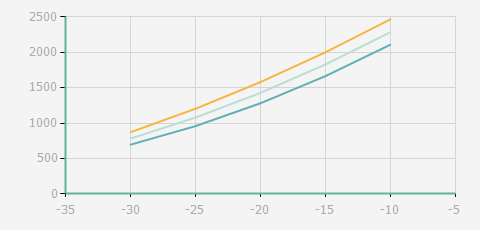 | 蒸發(fā)溫度 | 制冷量+/-5% | 能耗+/-5% | 現(xiàn)在能效+/-5% | 氣體流速+/-5% | 能效+/-7% | ||||